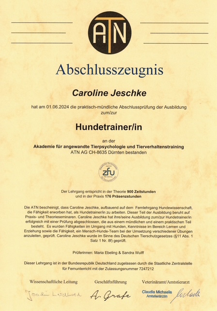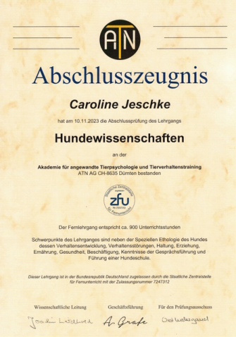Caroline Jeschke zertifizierte Hundetrainerin (ATN)